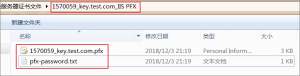 您将看到文件中有一个证书文件(以.pfx为后缀或文件类型)和一个密钥文件(以.txt为后缀或文件类型)。