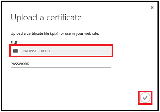 第9步,选择从IIS导出的.pfx证书文件。使用用于从IIS创建PFX文件的相同密码)。最后,单击复选标记