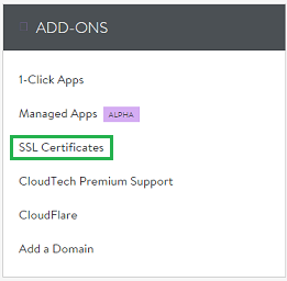 3)在“ADD-ONS” 部分单击”SSL证书“保护主域的选项