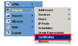 1、打开 WebUI 并在菜单下浏览对象 >> 证书。