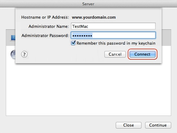 2、现在,打开服务器应用程序并选择 Mac 服务器的类型。输入您的登录详细信息。