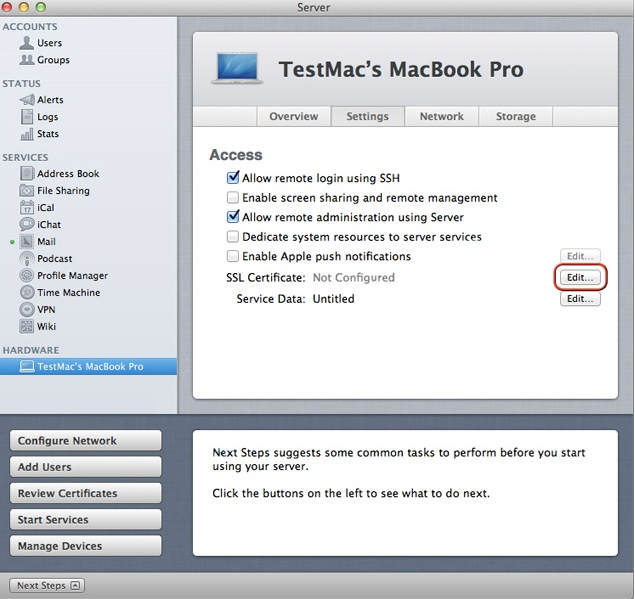9、最后,您已经在 OS X Lion 10.7 Server 上成功安装了 SSL,您可以在“设置”选项下进行检查。