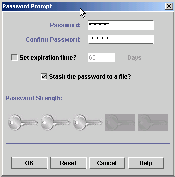 6、在“密码提示”框中,选中“将密码存储到文件中”,因为它将加密密码并将 .sth 文件保存在同一目录中。单击确定按钮。