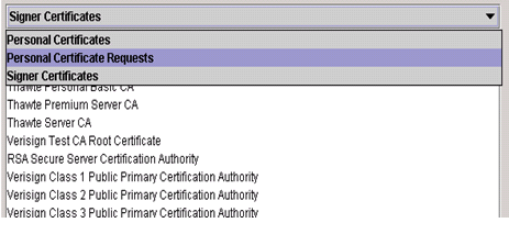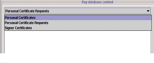 2、在密钥数据库内容选项卡下,单击下拉框并选择个人证书请求。