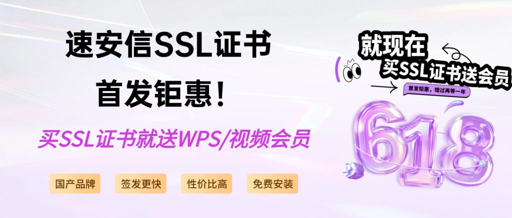 速安信SSL证书首发钜惠!购国产SSL证书,就送WPS、视频VIP会员