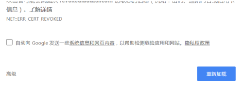 错误二:SSL证书被撤销 错误代码:NET::ERR_CERT_REVOKED。具体报错如图: