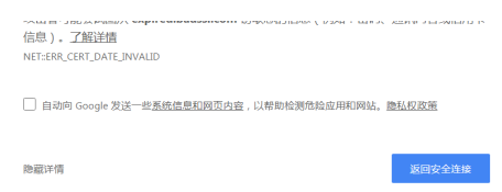 错误三:SSL证书到期了。 错误代码:NET::ERR_CERT_DATE_INVALID,具体报错如图