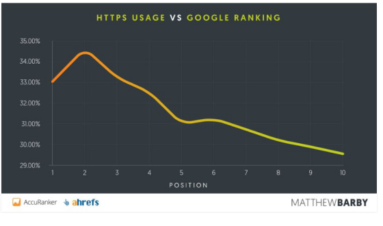 因此,Matthew Barby对百万个网址进行了分析,结果发现在Google中排名第1,2或3的所有网页中有超过33%的网站在使用HTTPS。