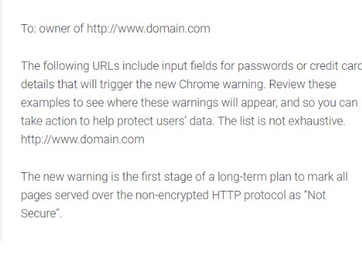 如果您尚未升级为HTTPS,则可能还会从Google Console收到以下警告: