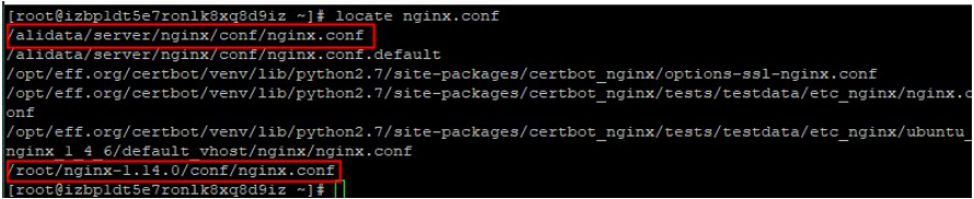 2.我们需要知道该nginx服务安装在什么目录下,需要查找和判断,可能有时候会出现两个服务的配置文件,这个时候我们需要判断一下生效的是哪个?