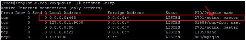 前面有提到443端口,我们在配置文件里添加过后可以先不填写证书相关的信息,wq保存退出然后重启一下服务,查看端口信息或者在本地telnet一下,查看是否可以正常连接