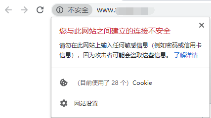 百度、谷歌等主流浏览器对未安装SSL证书提示“不安全”信息:
