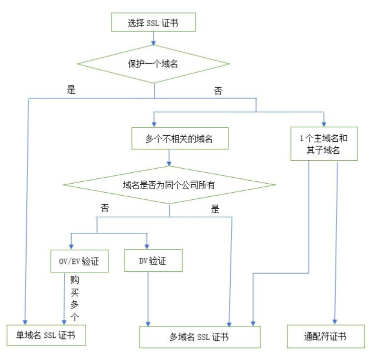 一、首先我们来选择一个SSL证书,如何选择适合自己的SSL证书,请看下图: