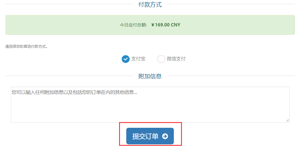 选择支付方式,提交订单即可
