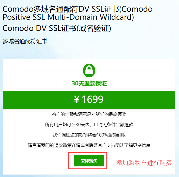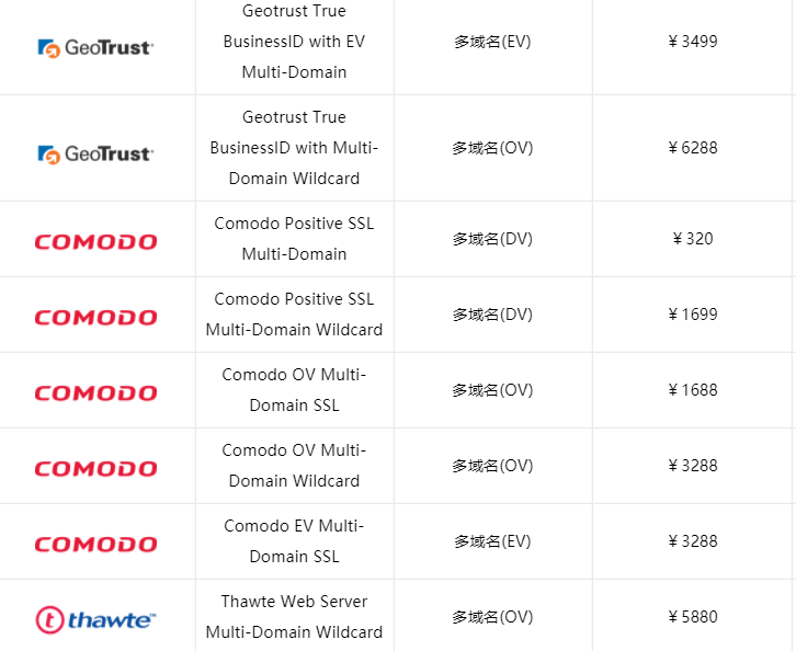 OV企业型多域名SSL证书也是Comodo的,1699元/年(查看详情)