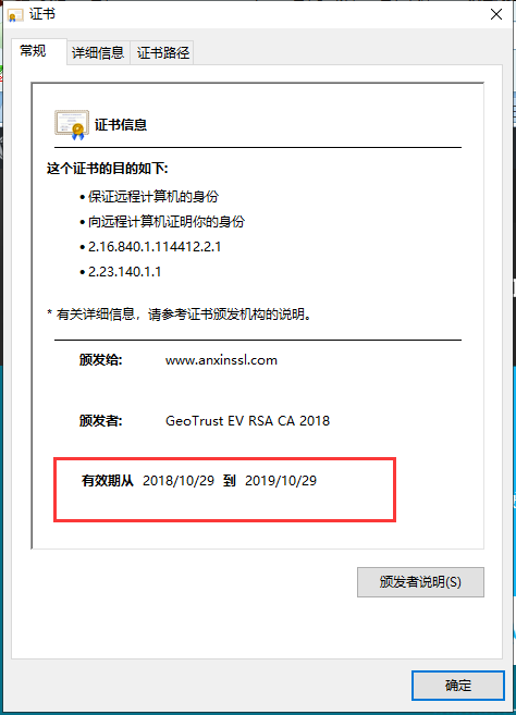 点击“证书详情”就可以查看SSL证书的有效期限,以及SSL证书是否过期的信息。