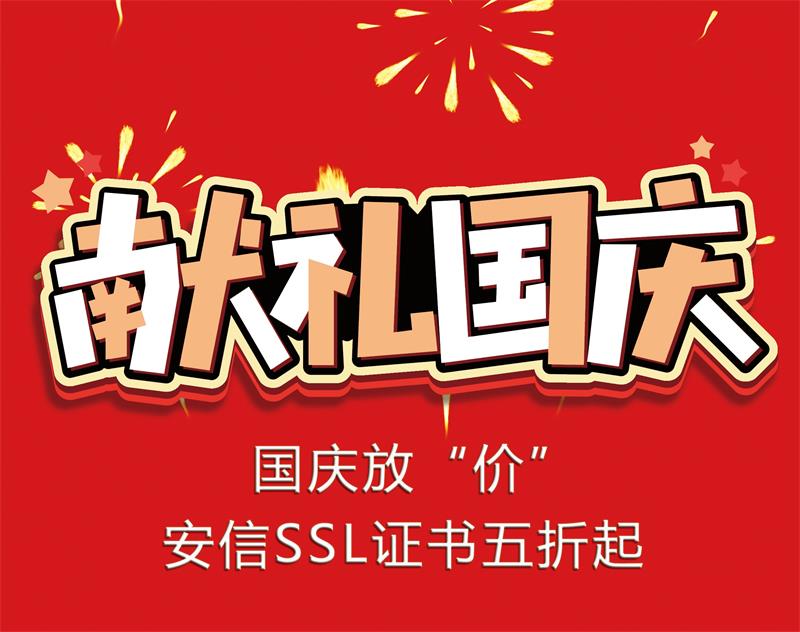 从10月1日开始,国庆黄金周长假就开始放假啦!在这个举国欢庆的日子里,安信SSL证书推出一系列优惠促销活动,全场SSL证书五折起,最低只要80元/年!活动详情如下: