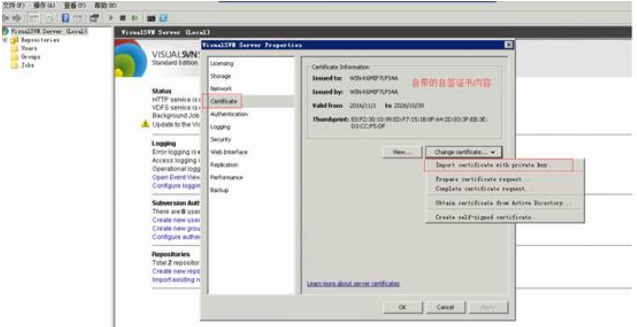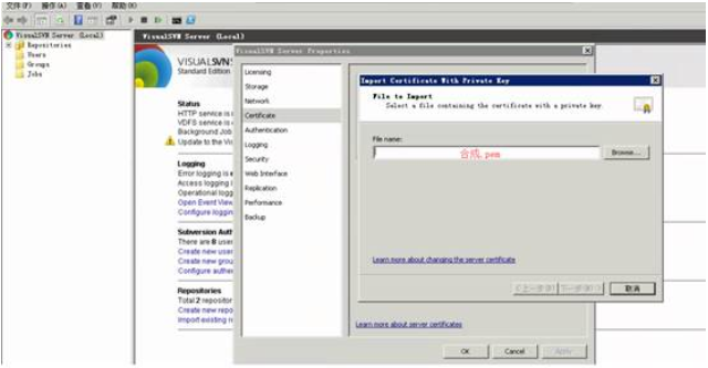 4.选择开始合成的.pem文件导入,到完成,重启SVN即可。