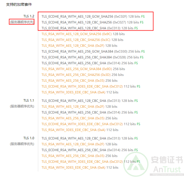 如果服务器没有指定FS系列加密套件优先使用,则会相应降级: