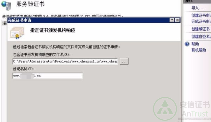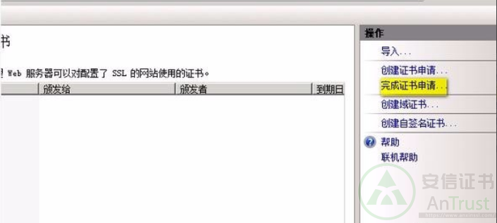 1、打开IIS管理器,点击“服务器证书”,进入“完成证书申请”