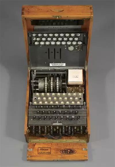 1918年,德国人阿瑟·谢尔比乌斯(Arthur Sherbius)发明了一种能够进行加密和解密的密码机,叫做恩格尼码密码机(Enigma)。谢尔比乌斯使用能够转动的圆盘和电路,创造出前所未有的高强度密码算法。最初,Enigma只是用在商业领域,纳粹时期德国国防军正式采用Enigma作为传递军事情报的密码机。